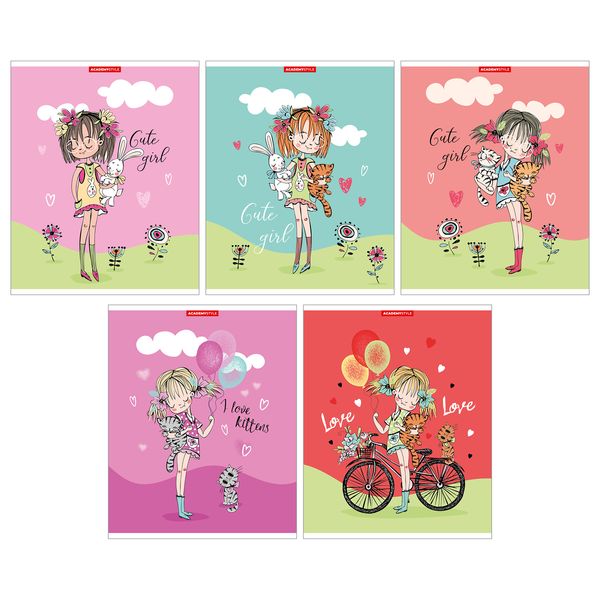 Тетрадь 48л Академия Девочки с питомцами (5 видов) лак с глиттером 14160/5 белизна 100%
