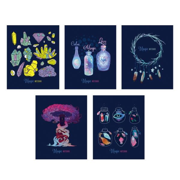 Тетрадь 48л Эксмо Магическая серия (5 видов) серебр.блестки, лак, мел.картон ТКБ488251