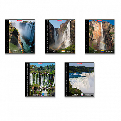 Тетрадь 48л ErichKrause Энциклопедия. Водопады (5 видов) мел.картон 47531 белизна 100%