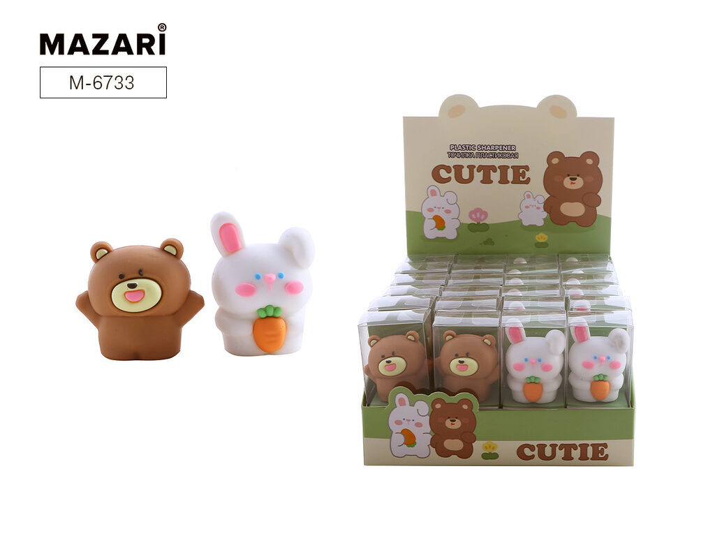 Точилка-игрушка Cutie (зайчик/мишка) 4 см Mazari M-6733 без контейнера, пвх-упаковка 7,5 см