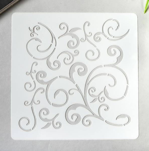 Трафарет для творчества пластик 13*13см Завитки (растительный узор) 4346858