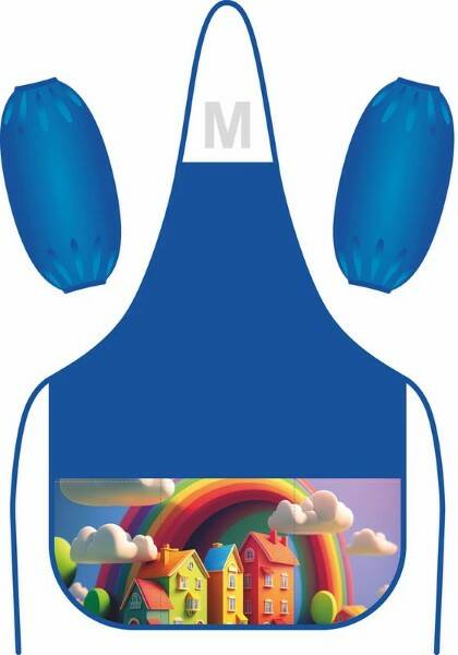 Фартук для труда с нарукавниками 54*45см Сказочные домики цвет синий 3 кармана нейл.Lamark PA0004-13