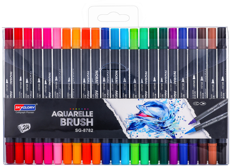 Фломастеры-кисточка 24цв. двусторонние с фломастером Lamark Skyglory Дельфин SG8782-24PVCB