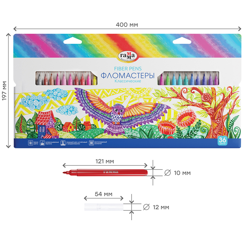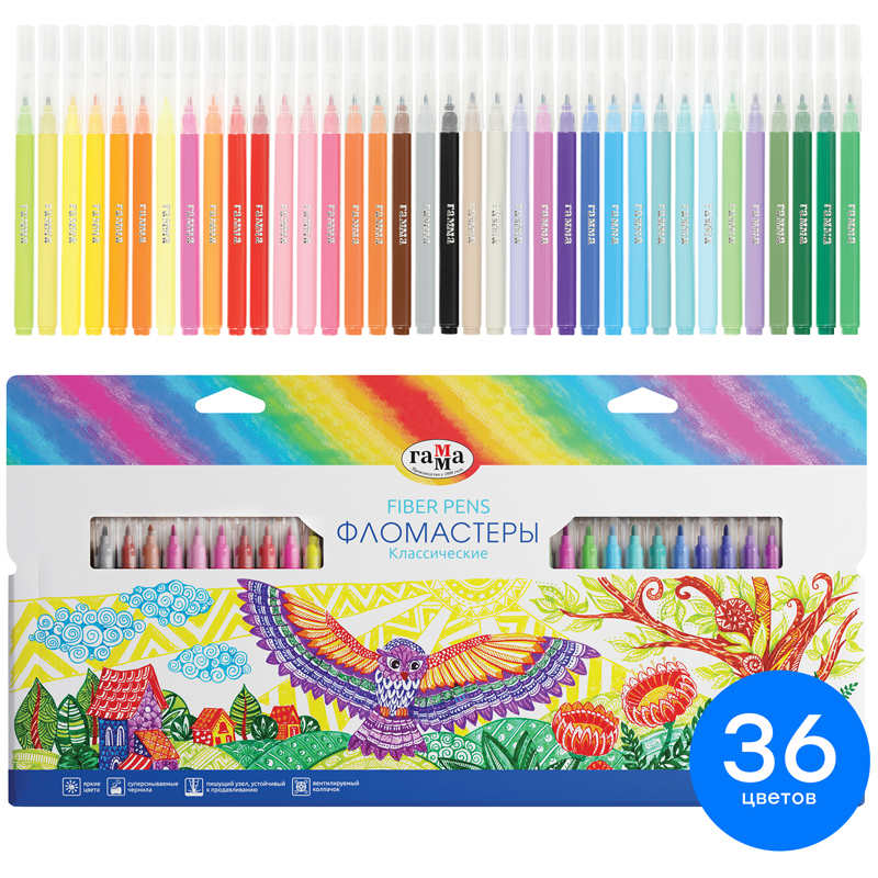 Фломастеры 36цв. Гамма Классические, карт.коробка 180319_14 супер смываемые вентилир. (Италия)