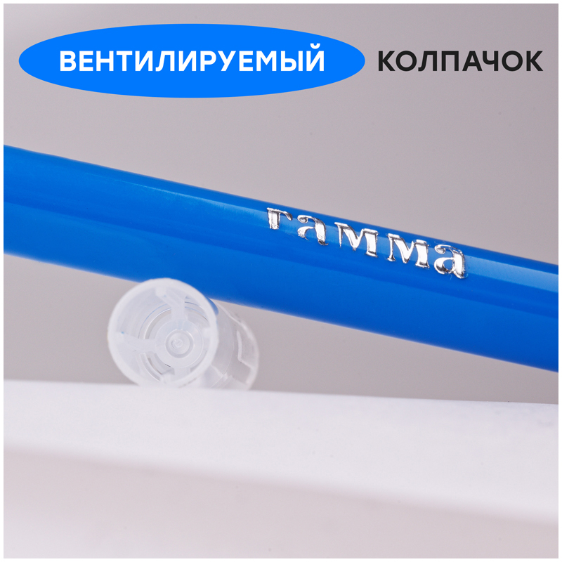 Вентилируемый колпачок изготавливается по международному стандарту 7272/90: специальные отверстия пропускают не менее 8 литров воздуха в минуту — даже если ребёнок проглотит колпачок, он не будет препятствовать дыханию. При этом наконечник фломастера изолирован и чернила не высыхают.