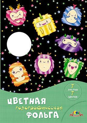 Фольга цветная голографическая А4 07л.07цв. Звездные монстрики Апплика С0296-12 в папке