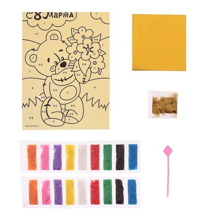 Фреска с блестками и фольгой А5 С 8 марта! Медвежонок (+песок 9цветов, блестки, фольга) 1512130