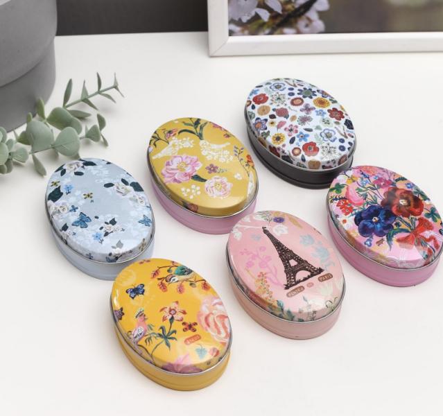 Шкатулка металл овальная Цветы и путешествия 8,7*6,2*3,2см 5352434